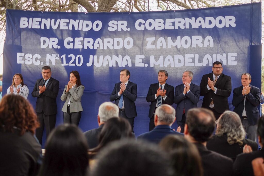 Acompañado por el vicegobernador Carlos Silva Neder y el jefe de Gabinete de Ministros, Elías Suárez, el gobernador Gerardo Zamora inauguró este lunes las obras de refacción y remodelación de la Escuela N° 120 “Juana E. Mandelaine” de la localidad de Coro Pampa, en el departamento Silípica.