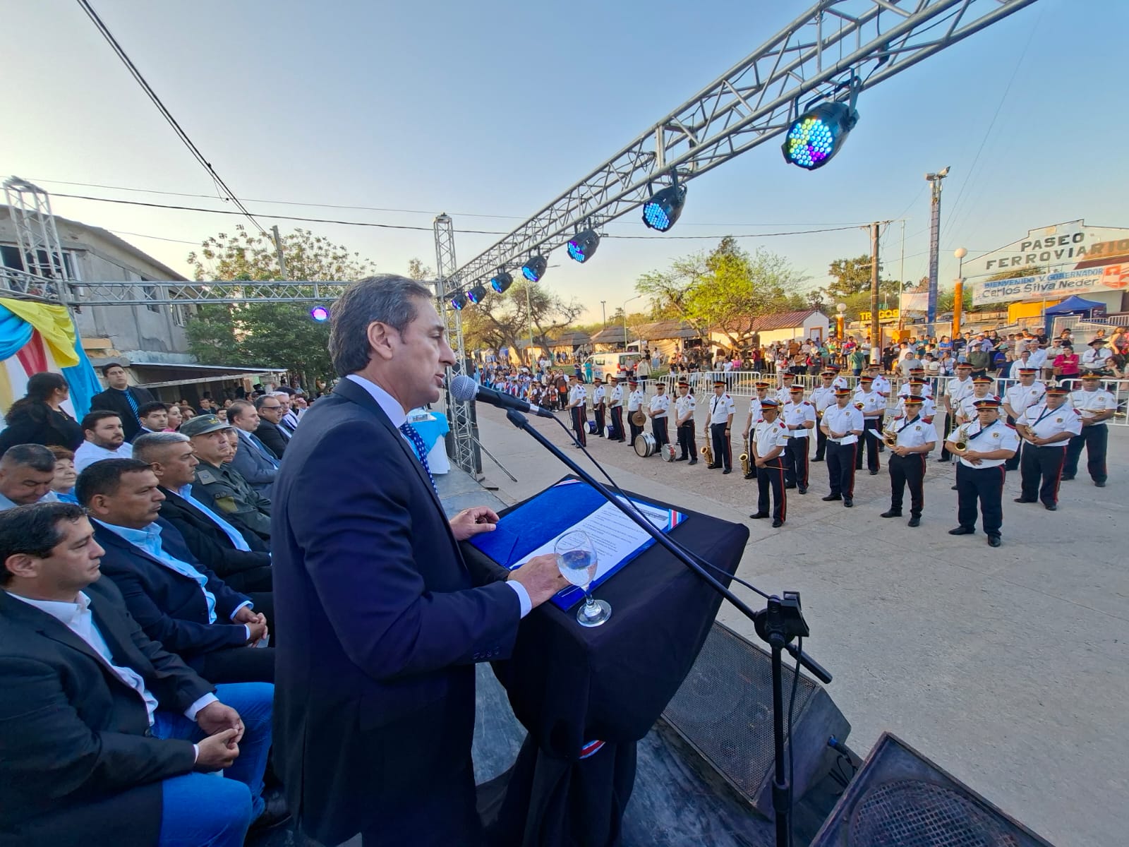 La jornada contó con la presencia de intendentes de localidades cercanas, comisionados municipales, representantes de instituciones educativas, culturales y de seguridad, además de un nutrido público que luego acompañó el tradicional desfile cívico-militar por las calles de la ciudad.