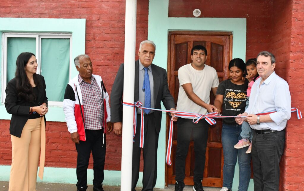 En representación del Gobierno de la provincia, los ministros de Desarrollo Social, Ángel Niccolai, y Gobierno, Marcelo Barbur, participaron de la entrega de viviendas sociales y de la inauguración de obras en Villa Silípica, junto con el comisionado municipal de esta localidad, Carlos Concha y la presidenta de la Asociación Emi y los Niños, Julia Ledesma.