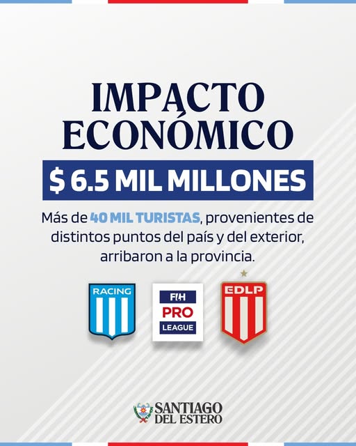 Durante las últimas semanas, cerca de 40 mil personas, provenientes de distintos puntos del país y del exterior, arribaron a Santiago del Estero para participar y disfrutar de propuestas de gran convocatoria, como la Pro League de Hockey y la Final del Torneo Clausura de la Liga Profesional de Fútbol, disputada entre Racing Club y Estudiantes de La Plata.