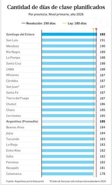 Según un reciente informe de la organización civil “Argentinos por la Educación” la provincia de Santiago del Estero alcanzará los 192 días de clases en el nivel primario durante 2026.